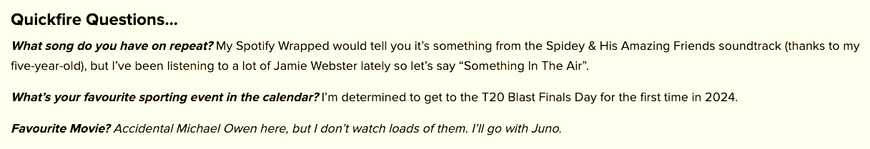 Last year I was interviewed for a work profile piece on the company website.